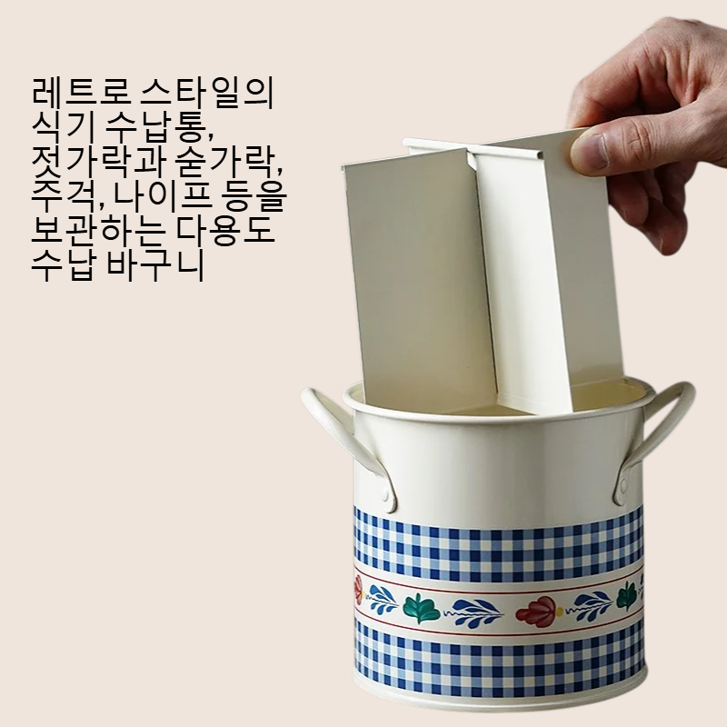 복고풍 디자인, 젓가락·숟가락 분리 수납 가능, 원통형 구조로 공간 절약, 식기 정리 효율적, 내구성 우수, 주방 인테리어 소품으로 적합