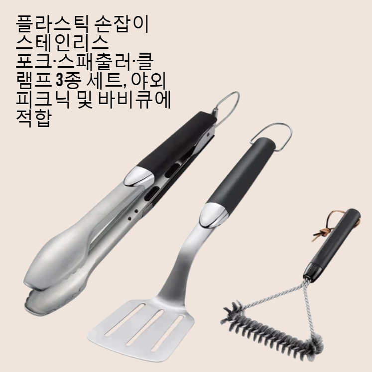프리미엄 스테인리스 스틸 소재, 내구성 우수, 세척 간편, 바비큐 필수 3종 세트로 실용적이며 휴대가 편리합니다.
